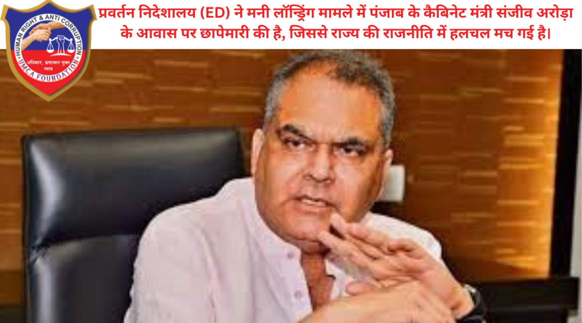 लुधियाना/चंडीगढ़: पंजाब की सियासत में आज उस वक्त हड़कंप मच गया जब प्रवर्तन निदेशालय (ED) की टीमों ने प्रदेश के कैबिनेट मंत्री और उद्योगपति संजीव अरोड़ा के ठिकानों पर एक साथ छापेमारी शुरू की। यह कार्रवाई मनी लॉन्ड्रिंग और विदेशी मुद्रा प्रबंधन अधिनियम (FEMA) के उल्लंघन से जुड़े मामले में की गई है।